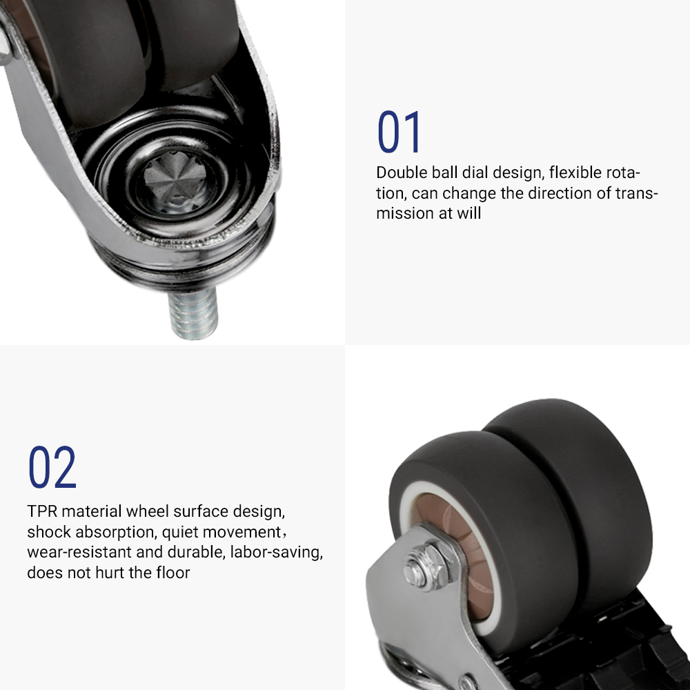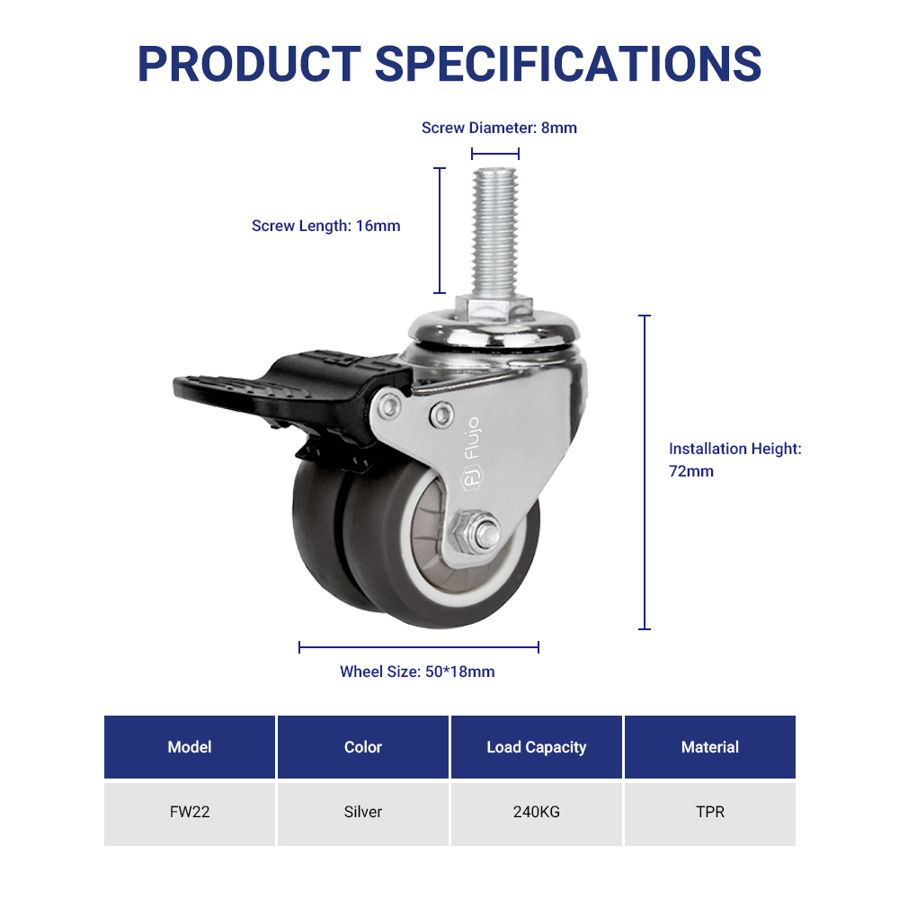 [SG Stock] Flujo 4pcs M8 Swivel Wheels Caster TPR Threaded Stem Caster Wheel with Lock Brake Screw 360 Degree Caster Wheels Heavy Duty For Home Office Standing Desk Chair Load 80kg/pc