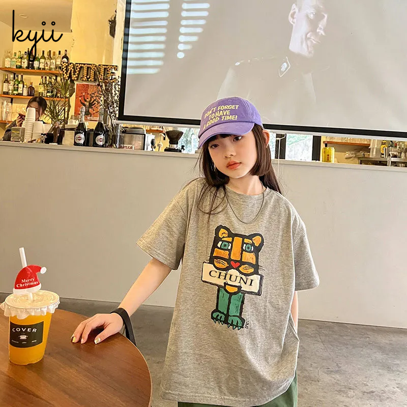 KYII Girls short sleeved T-shirt Summer children cartoon loose Top ky22083