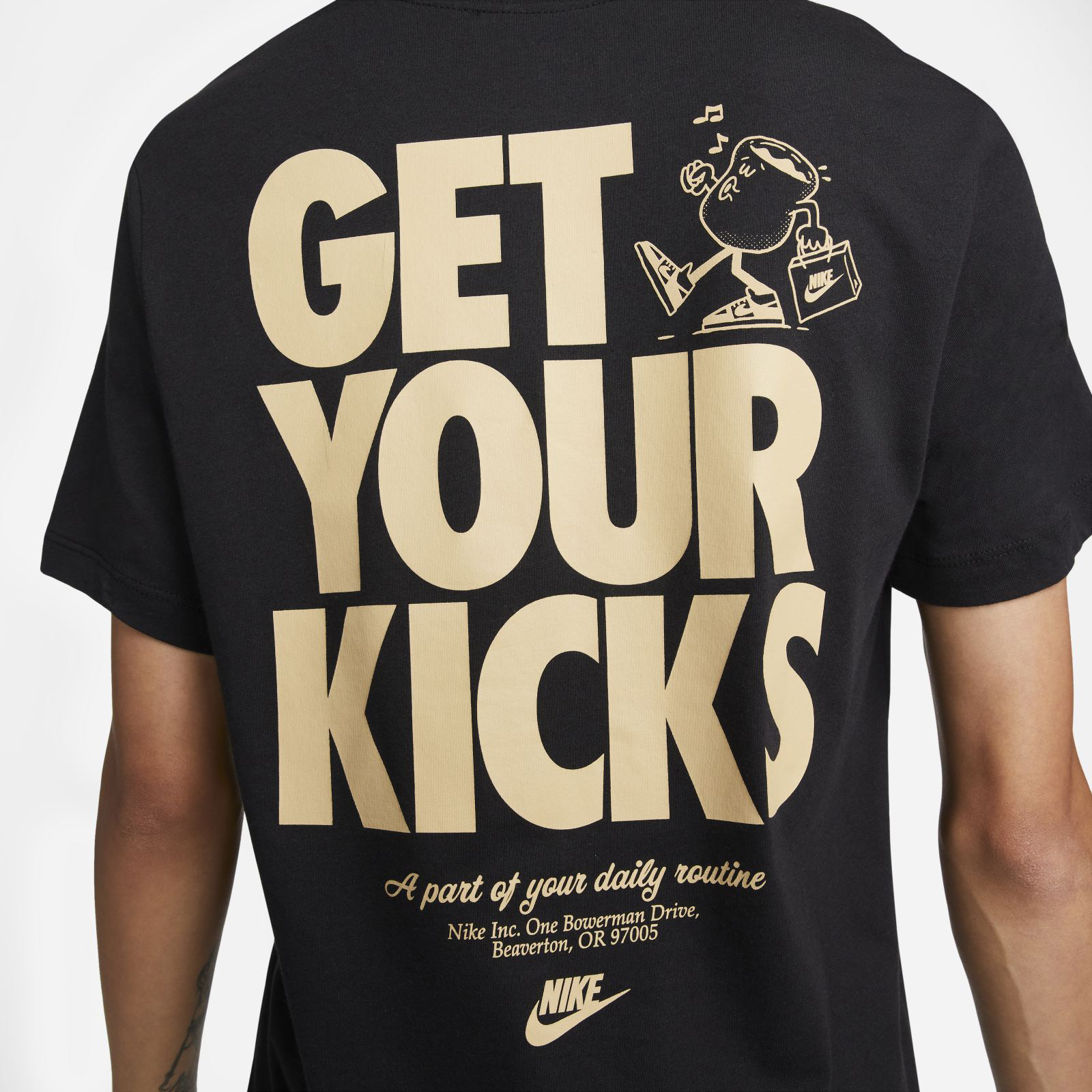 Rise and grind with the Swoosh and keep your style as fresh as your coffee beans. Made with our soft, lightweight cotton in a relaxed fit, this tee keeps it casual and comfy all day. Printed cafe-inspired graphics get you going in the morning.
