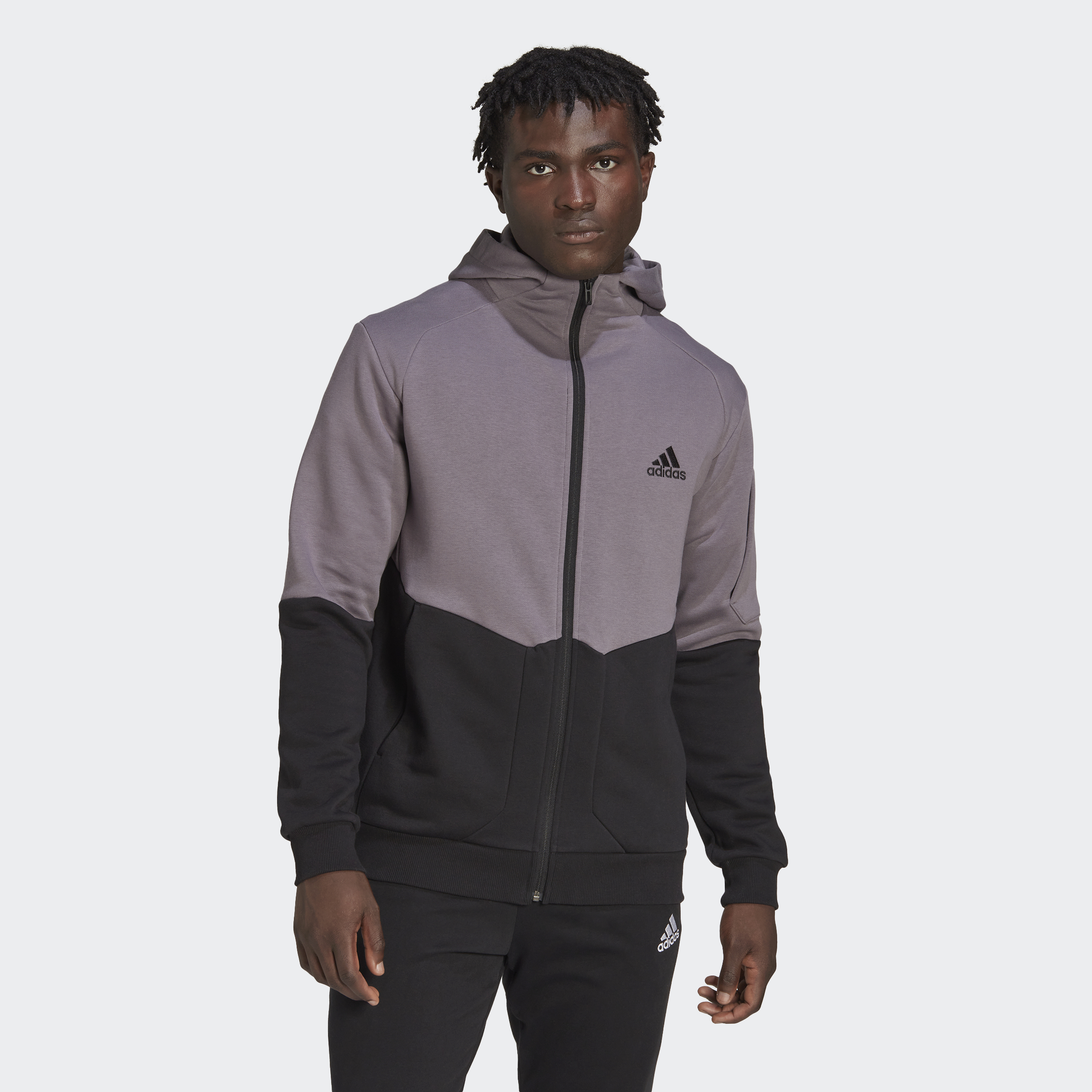adidas Lifestyle Essentials for Gameday Fleece Full-Zip Hoodie Men Grey HL6910